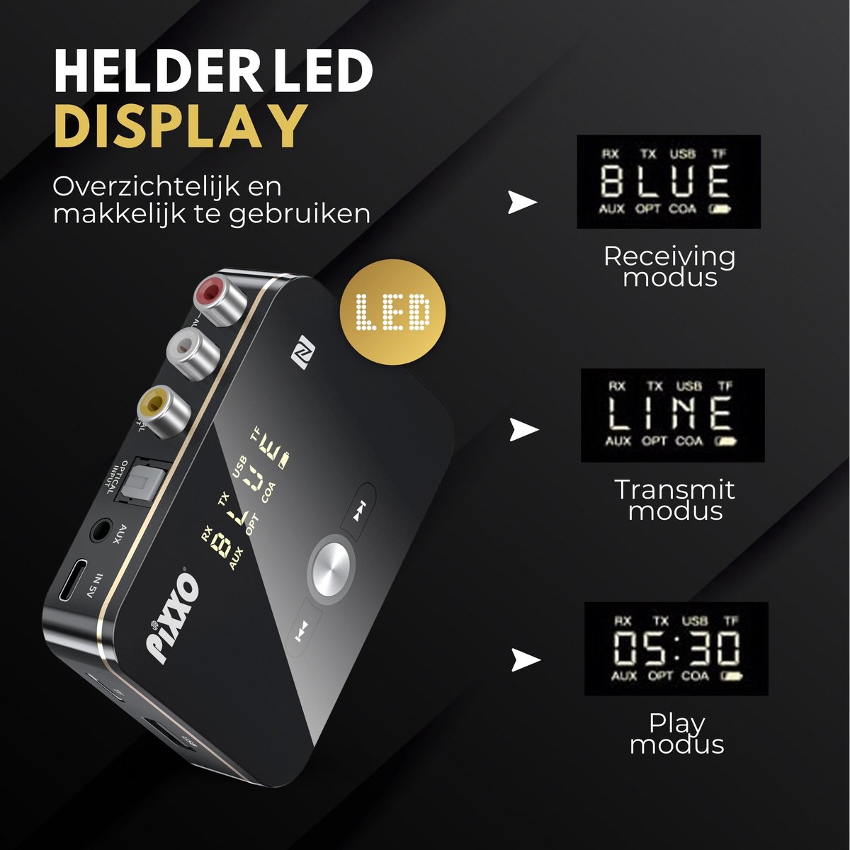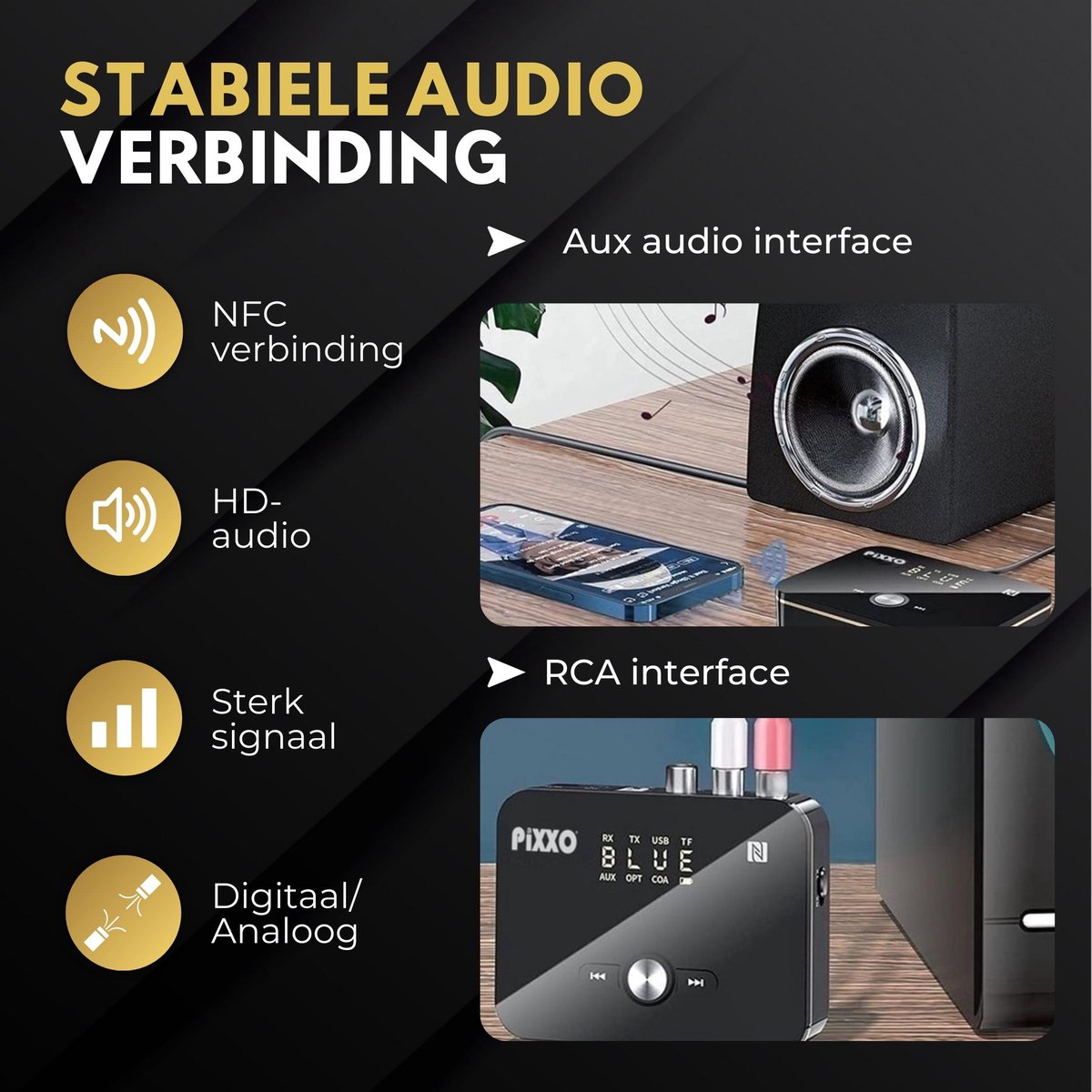 De PiXXO Bluetooth audio adapter maakt gebruik van Bluetooth 5.0. Deze receiver & transmitter zorgt voor een vlotte en vooral stabiele verbinding waarin er geen data verloren gaat wat resulteert in een kristalhelder HD geluid. Bluetooth 5.0 verbind zonder enige moeite of vervelende installatieprocedure met uw smartphone of ander bluetooth apparaat.